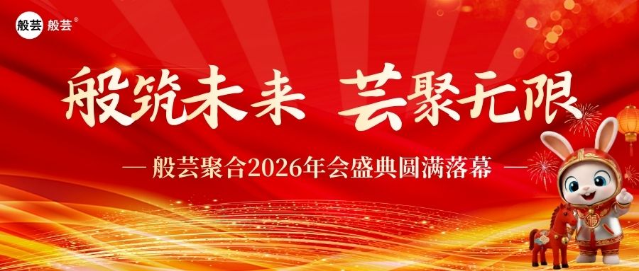 2026年1月23日傍晚,北京城华灯初上,公司年会现场内早已布置得流光溢彩。入口处,"般筑未来芸聚无限"的主题背景板在暖黄色灯光映照下格外醒目,每一位到场的同事都在这里郑重签下自己
